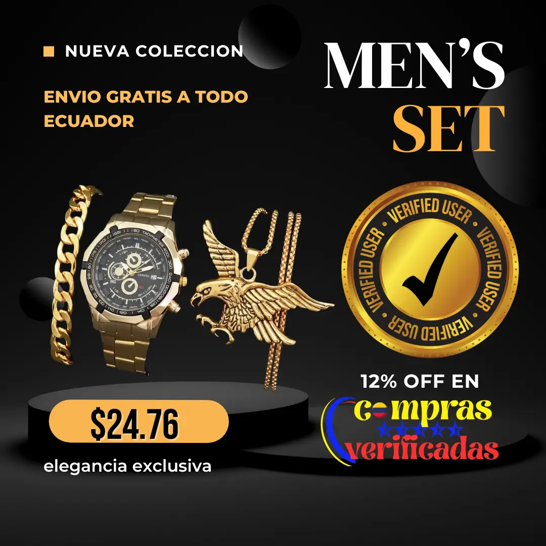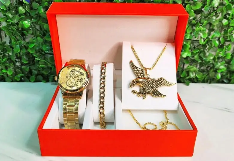 Este exclusivo set con reloj premium, pulsera y collar águila está diseñado para hombres que buscan elegancia, carácter y presencia.